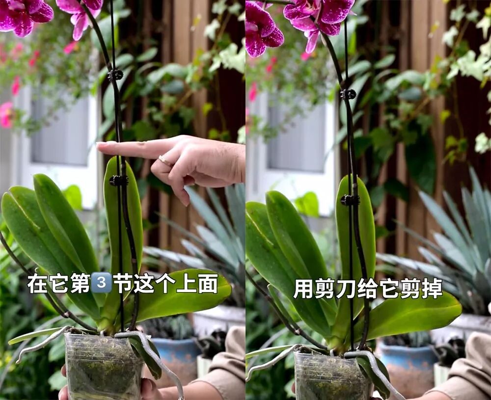 3个节上面,用剪刀剪掉,可能重新长出新的花箭。