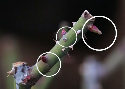 这里还有一个知识点:对于月季来说,一根枝条上,优先萌发最上方3个芽点。