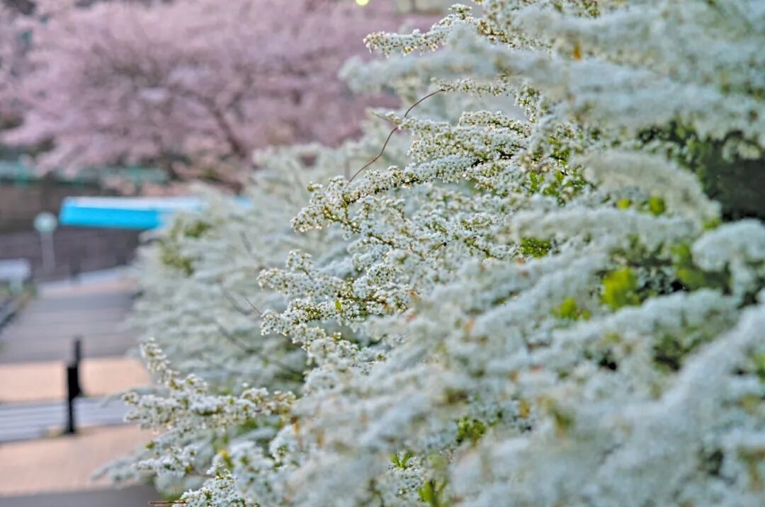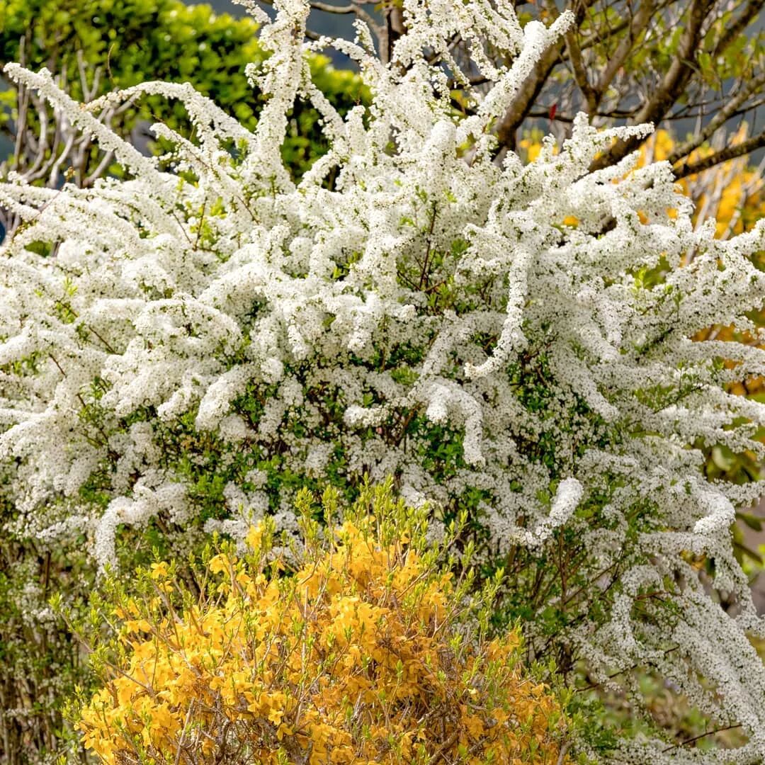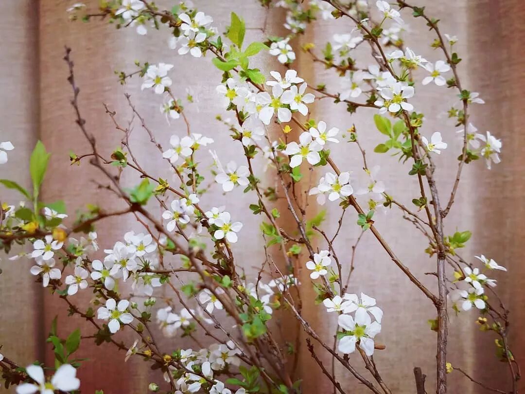 喷雪花盛开的美景,是不懂花儿的人也能惊诧的,一簇簇盛开,雪白的小花儿仿佛从地里喷溅而出,染上劲瘦的枝丫,一个劲儿往人的眼前钻。