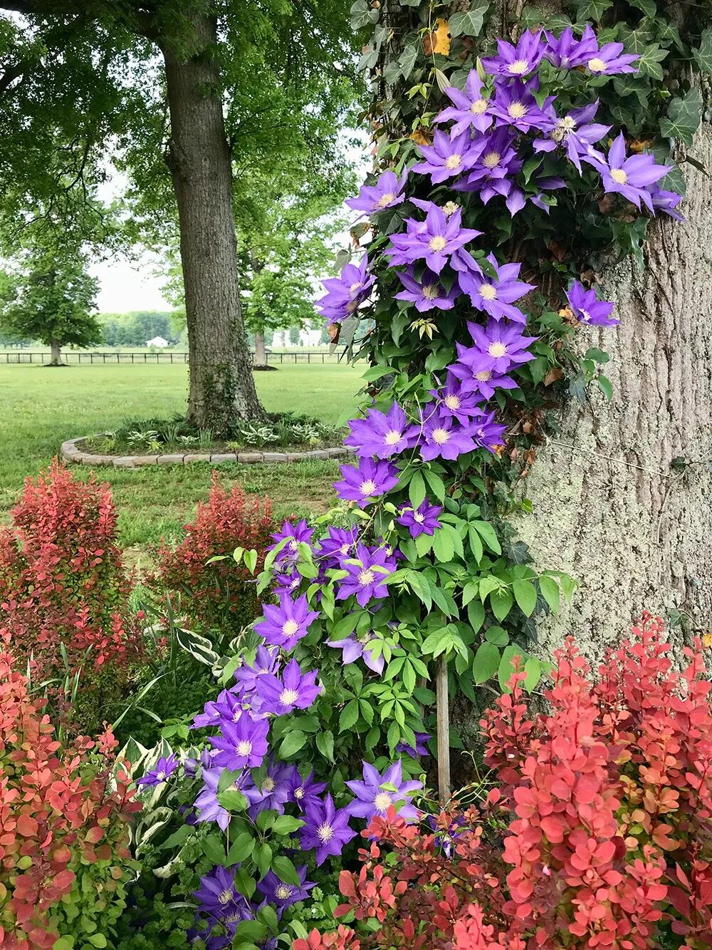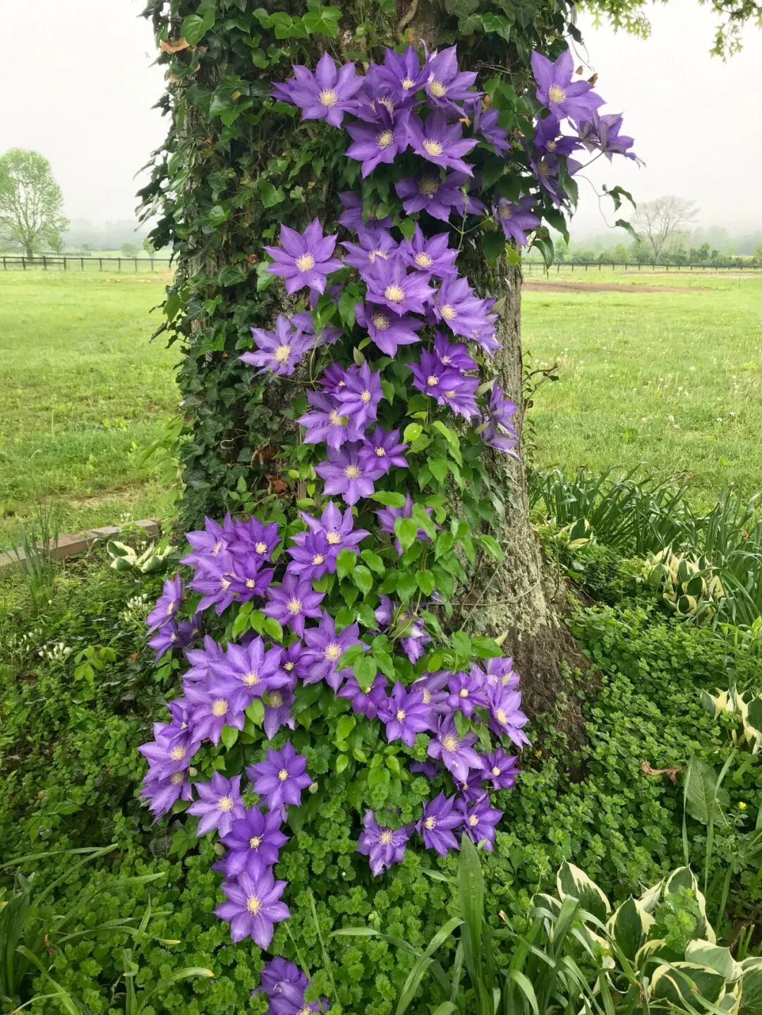 铁线莲,必不可少的藤本皇后,我们在树下种的这株第二年开出了二十朵左右花儿,第三年开了八十朵左右,第四年先后开出了上百朵花儿。