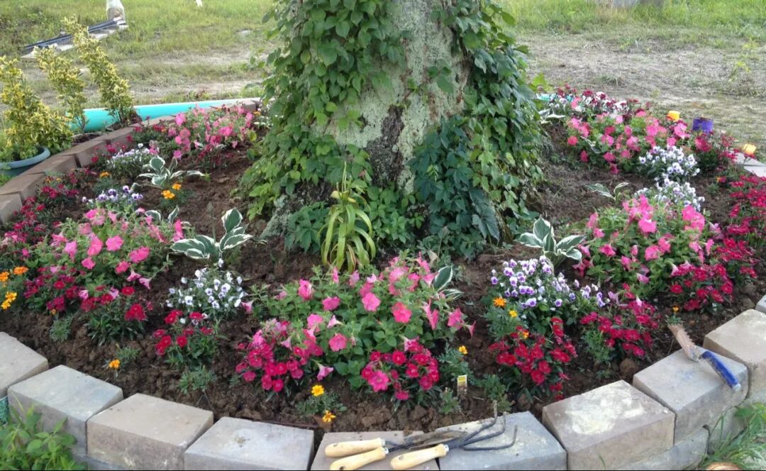 我们尝试把这些植物种在树下,围成一圈花裙子,没想到它们热热闹闹地茂盛了春夏两季。