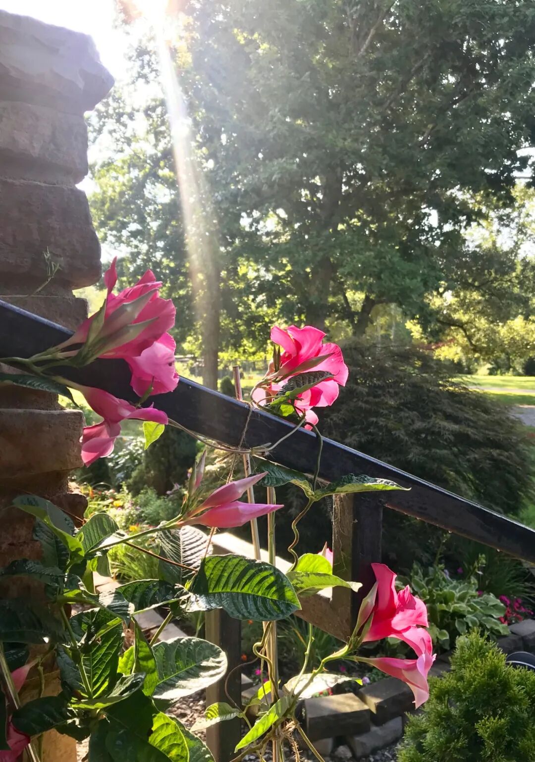 遇到暴风雨的天气,还得不辞辛劳地呵护它们,把台阶边上的通通搬到阳台上遮护,第二天天气好了再搬出来摆放。(还好是塑料盆,不重的)