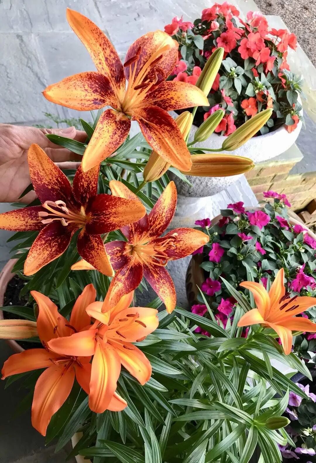 非洲凤仙和橙色百合