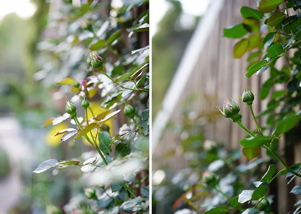 喝饱水露、晒足阳光后,月季开始疯狂抽枝,叶子变得肥而油亮,顶端结出饱满的花苞。
