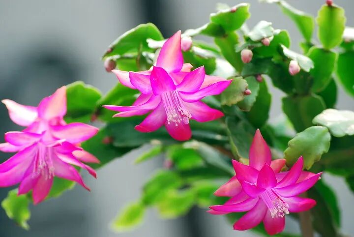 养护时,蟹爪兰也容易调控花期,只要温度和光照控制得当,一年四季都能开花,但是它耐不住高温,如果不是嫁接的蟹爪兰,一般盛夏高温季节都会短暂休眠,虽然气温高、水分蒸发快,但浇水不宜过勤,它肥厚的叶片可以储水,而且休眠期也应控制浇水,所以夏季适合“贱”养。