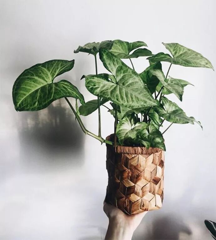 天南星科合果芋属多年生常绿植物,也是很常见的蔓生植物。老叶深绿色,新叶嫩绿色,而且叶片黄白色,有绿色斑块和条纹,是很流行的观叶植物。