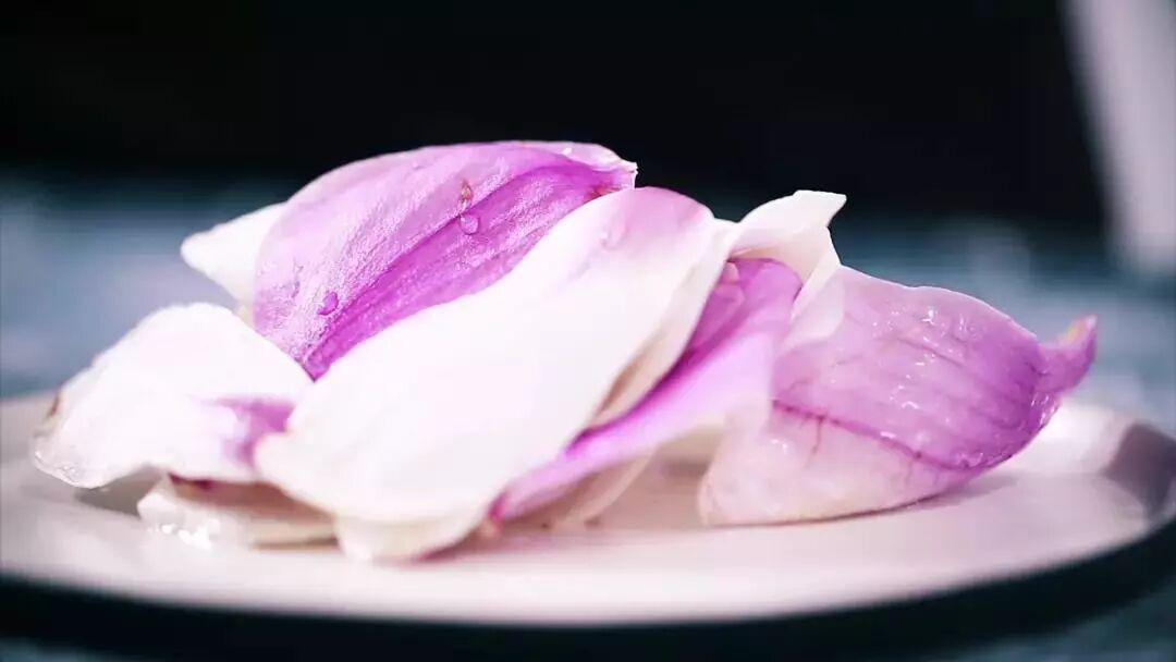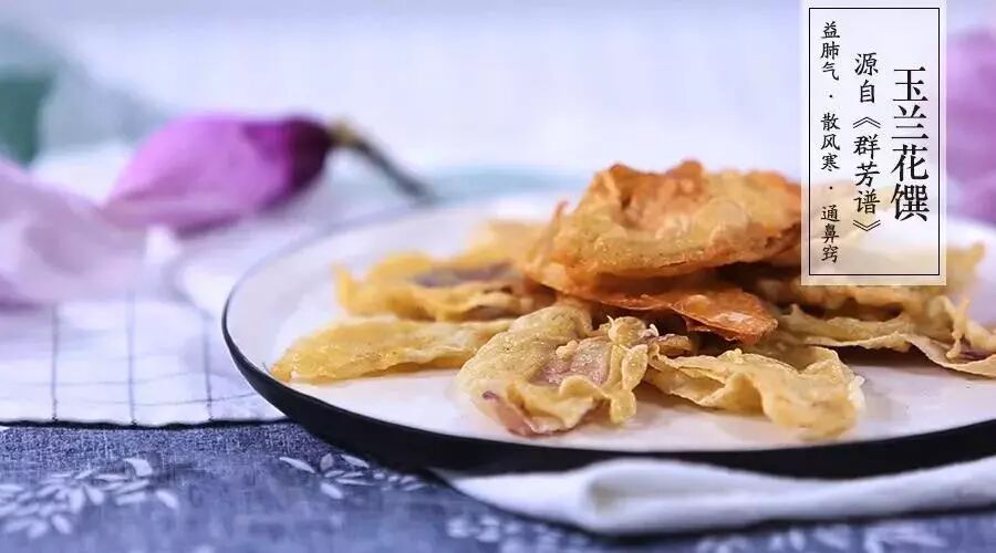 《群芳谱》中也有写道:“玉兰花馔,花瓣洗净,拖面,麻油煎食最美。”这不是现代的玉兰天妇罗嘛,据说慈禧太后也爱吃,还必须得撒上白糖。