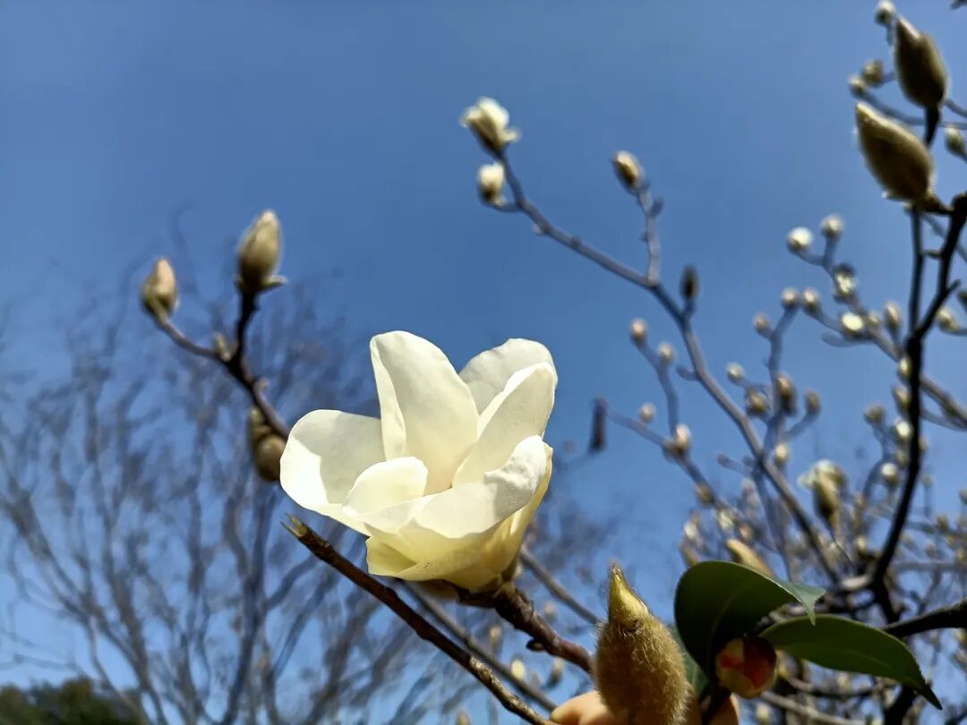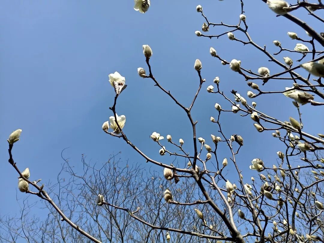 春光明媚,园区山茶花、迎春花、玉兰花、梅花烂漫,其中单数这白玉兰开得最抢眼,拼了命似的绽放。