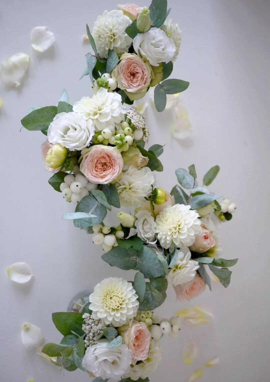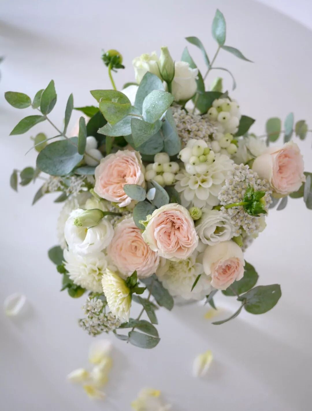 花材搭配:洋牡丹、香槟玫瑰、郁金香、茵芋