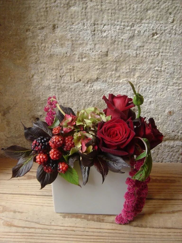 辅助色的搭配也不一定只有鲜花,果实或叶材也可纳入选择范围,达到理想的设计效果。