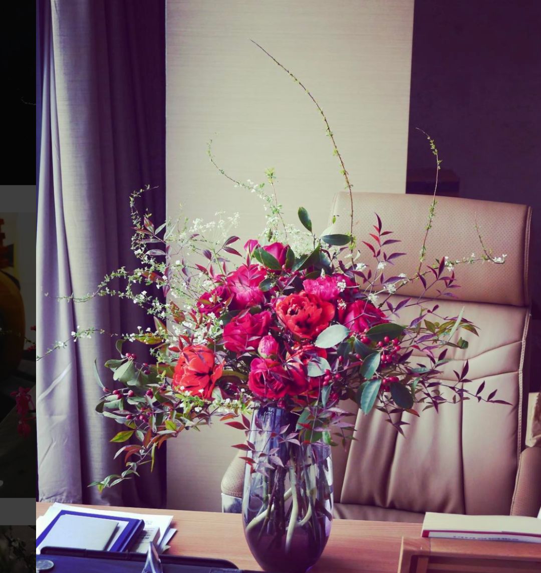 利落的线条感,让雪柳成了完美的配花。简单的雪柳插花,最适合放在客厅的边桌上。