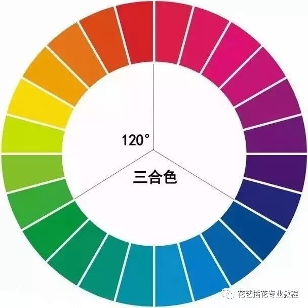 色环上等距离120°相隔(即正三角形)的三个颜色,如红、黄、蓝或橙、绿、紫。