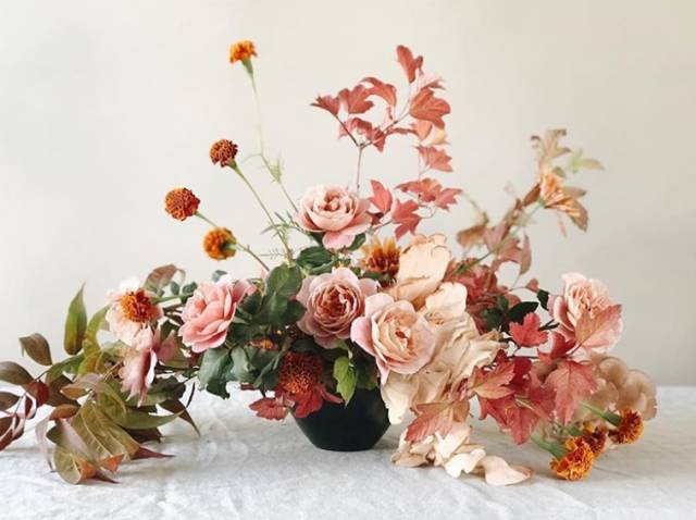 这是作为花艺师应该掌握的最基本要素,同色系、邻近色,以及如何巧妙运用饱和度高的色彩而又不冲突,这些都是在制作花艺过程中应该思考的。