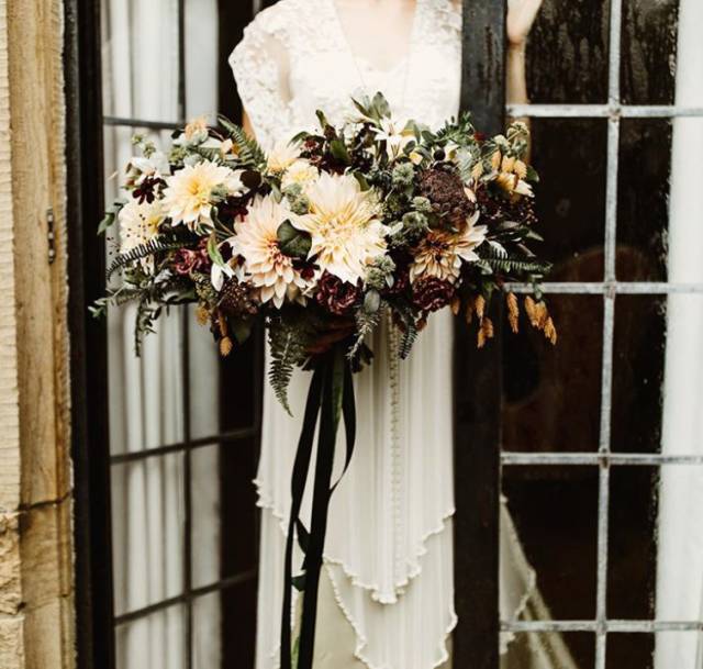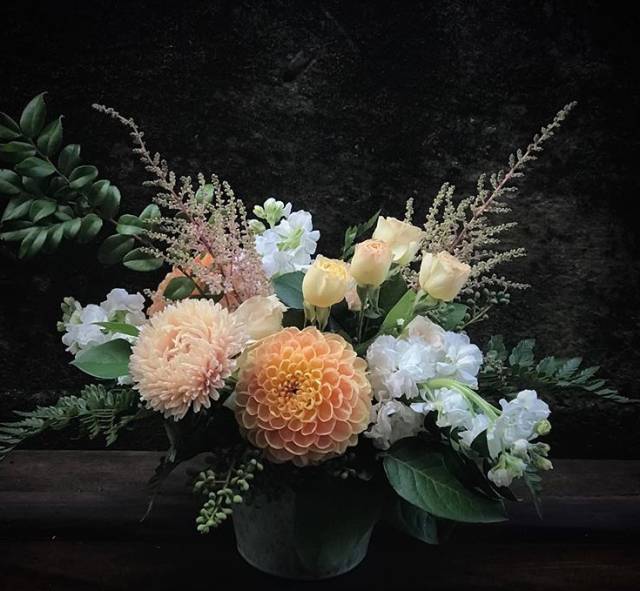 根据大尺寸,中尺寸和小尺寸的花进行搭配,根据花材叶材的线条增加花艺作品的趣味性。