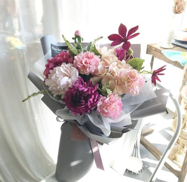 一定要选择应季花材,原因是将花材在有限生命中最好的状态呈现出来,保证做的作品是独一无二的。