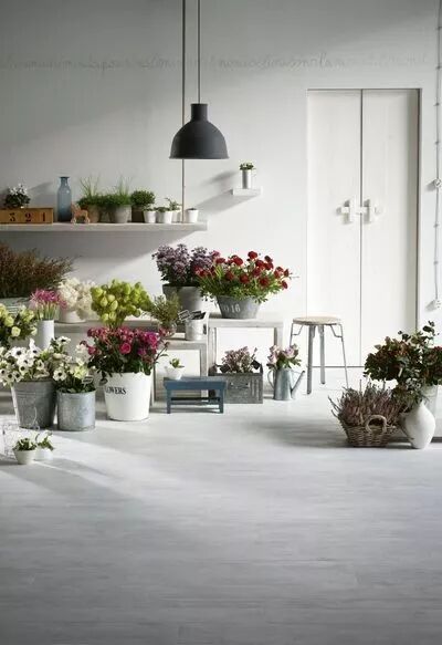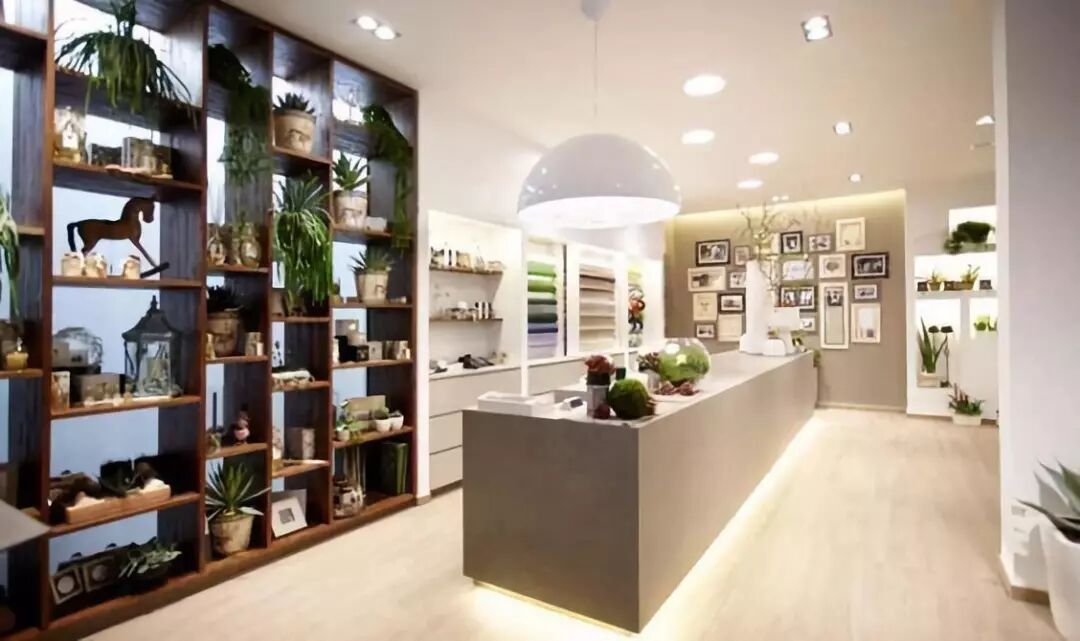 地板材料要坚固耐用,因为花店用水较多,不时会有水洒在地板上,木地板、地板块等胶贴的材料不适合,仿石地面要好一些。