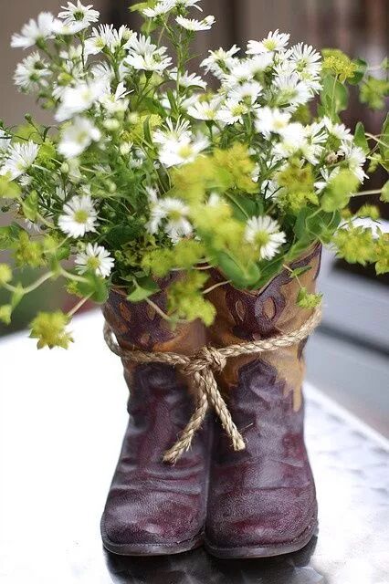 在鞋中插一束鲜花,仿佛是刚从山野中摘取的一般。“偷得浮生半日闲”,这样置身庭院的惬意感受,像是在家中为自己打造了一片闲适与悠然,把烦恼与喧嚣都隔离在空间之外。