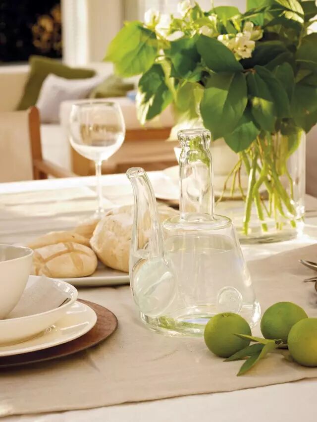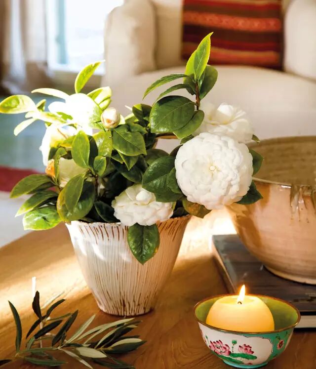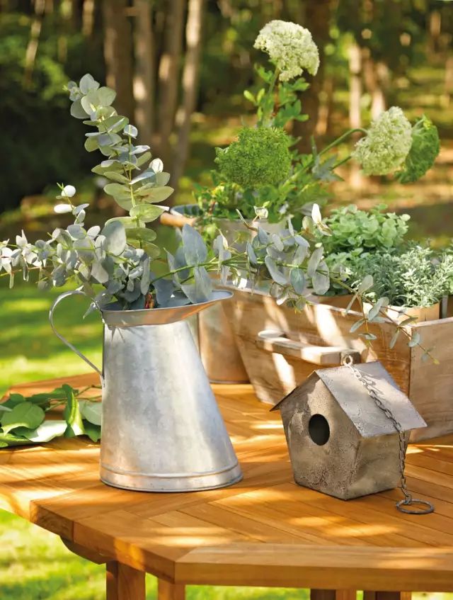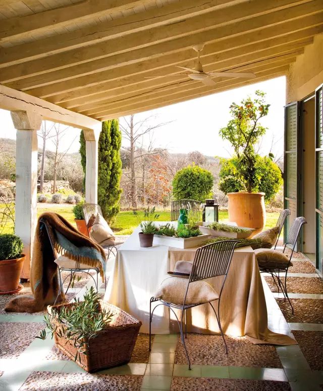 大棵的绿植、朴实的桌布