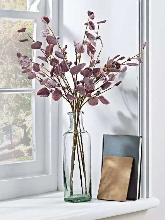 觉得家里空旷又不知道该选择什么的时候,尤加利是最好不过的选择。简单几枝插在透明玻璃花瓶中,添一点绿意,低调地享受生活。