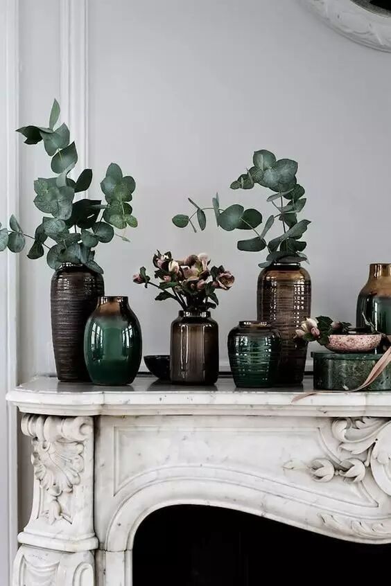 就连下面这种体型“敦实”的花瓶,尤加利也能给它搭配出一种风情来。