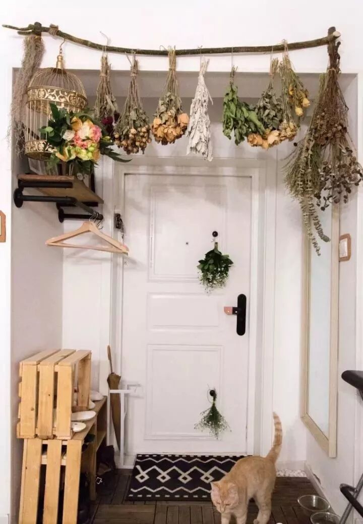 如果不会太复杂的造型,也可简单的将干花悬挂垂钓,同样会给人带来舒适的美感。