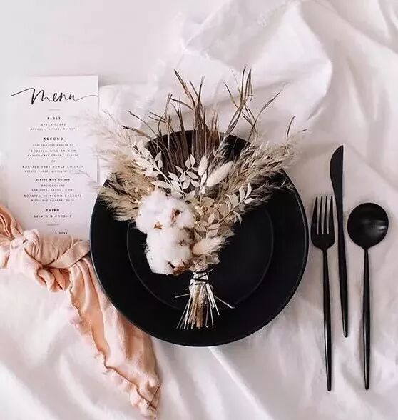 精致典雅、艺术装置式的干花造型,会使你的餐桌极具浪漫色彩。无需过分考究的家装风格:白墙、简单复古的桌面就是最好的搭配。