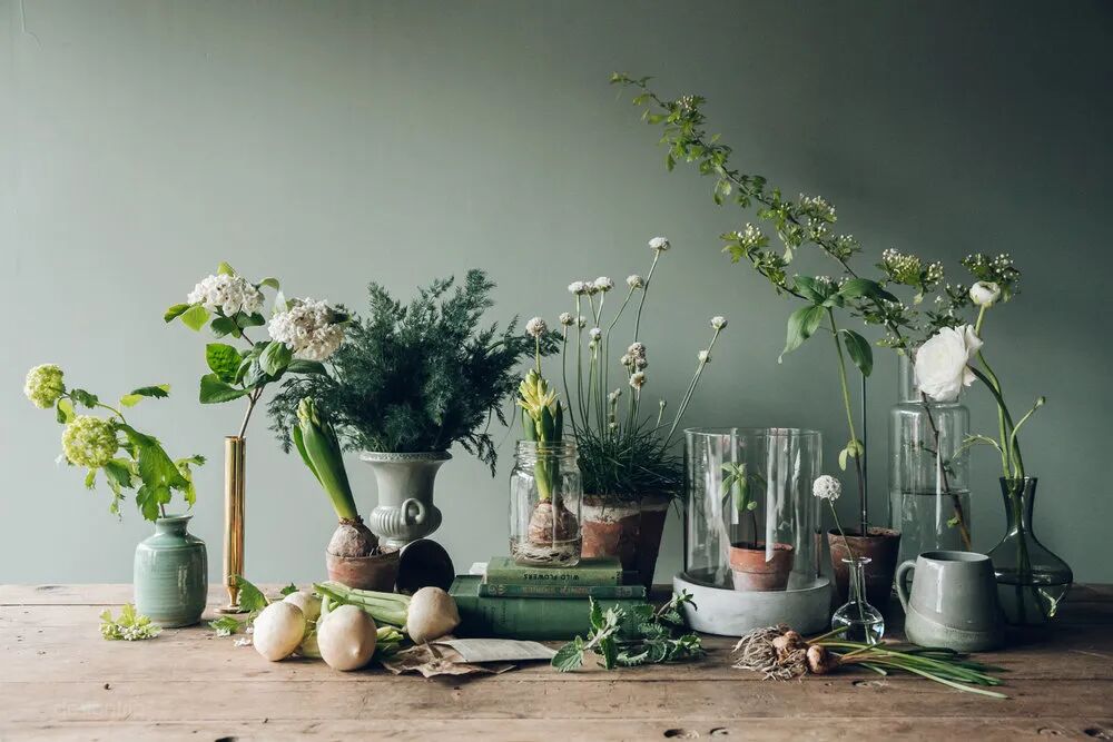 店主Anna 喜欢的方式则是以灰色墙面当成背景,映衬着不同角度斜射至屋内的日光阴影和变化,来比对出工作室中各种花丛的景像。流窜在屋内还有不曾间熄的复古韵味,满盈着花香和大自然的融和气味。