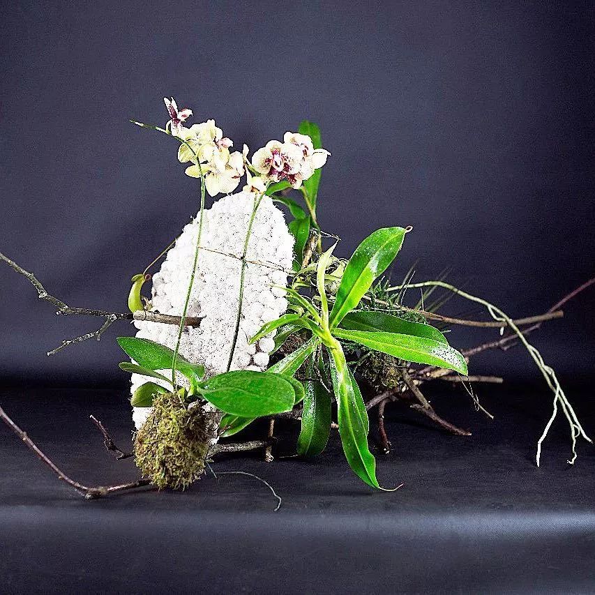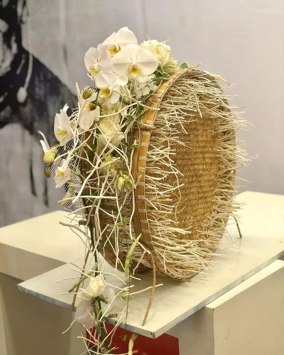 架构花艺打破了花和器皿的固有搭配,将最原始、最淳朴的创作手段引入其中,花艺作品让悬浮的花朵体现出精神内核的能量。