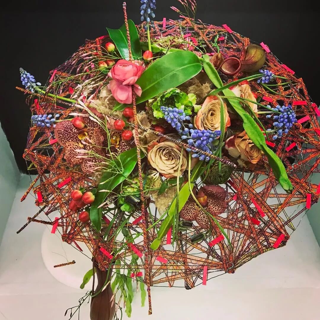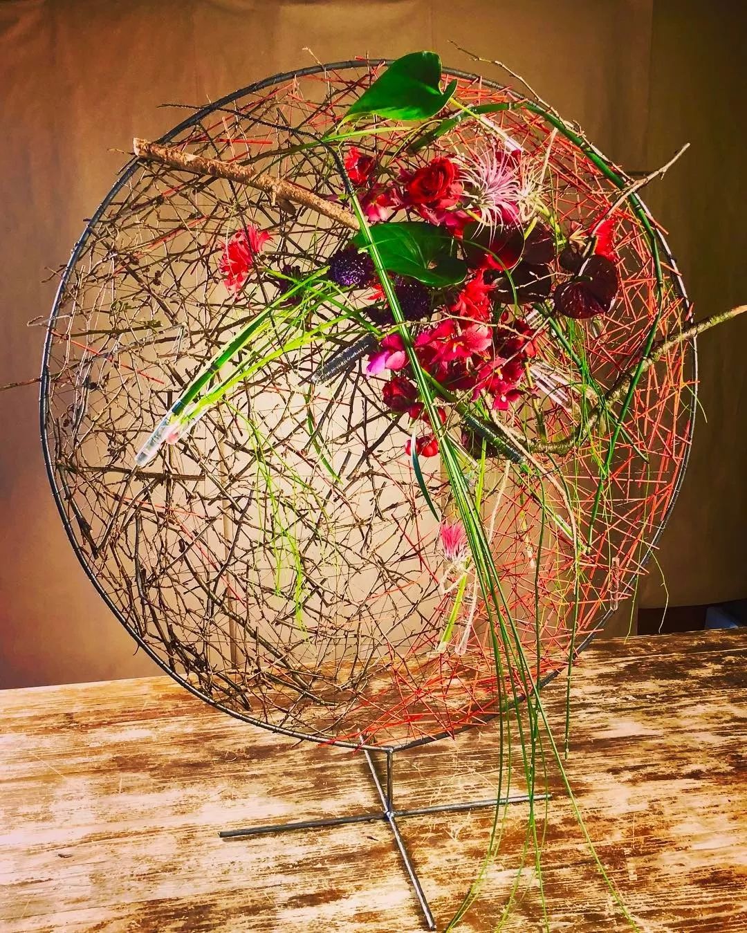 架构花艺作品要求花艺设计师在形态、空间、质地、线条和色彩上都有整体的把握,如何让花艺作品引人注目,架构就成了花艺师们的魔术道具。