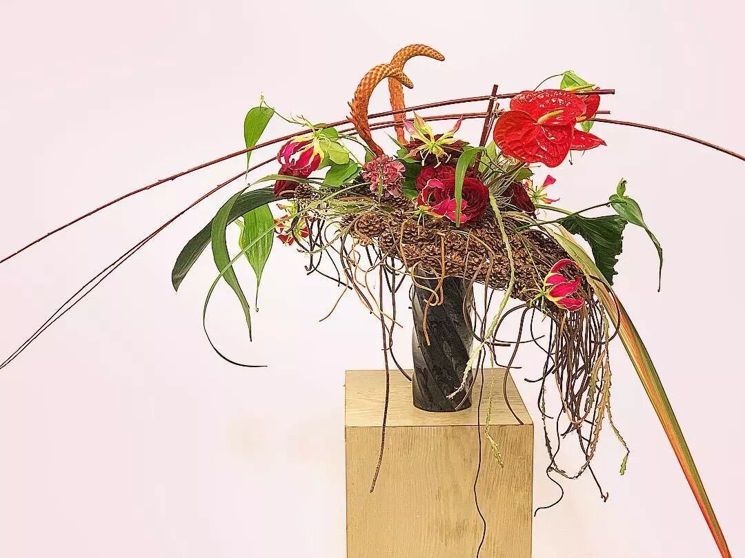 传统插花中,花瓶是支撑花材的支架,花材通过依靠花瓶的瓶壁展现姿容,而现代花艺的架构将带领人们穿越时空的限制。