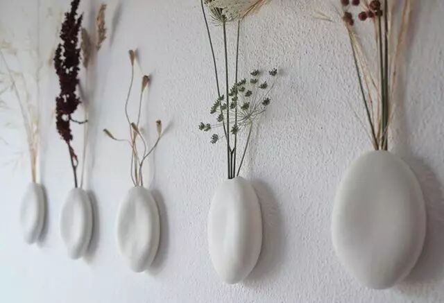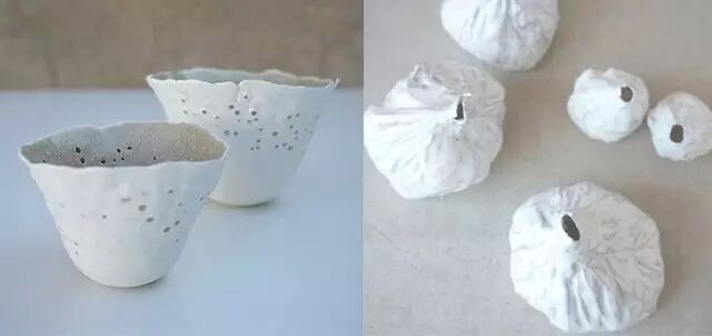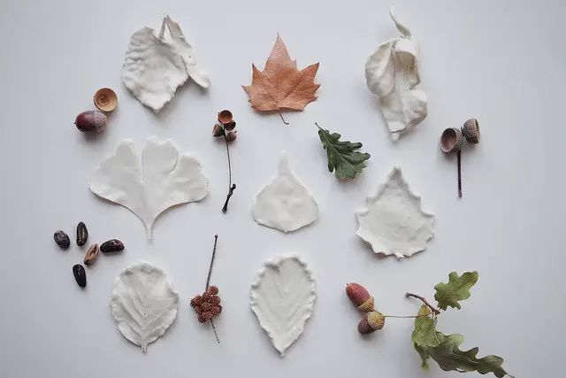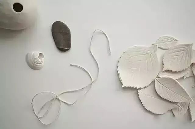 Paula Valentim还将树叶或花草涂上黏土,变成具有植物天然肌理的陶瓷作品,这一层白色的皮肤,凝固了它们的生命状态,赋予了它们一种纯白的别致。