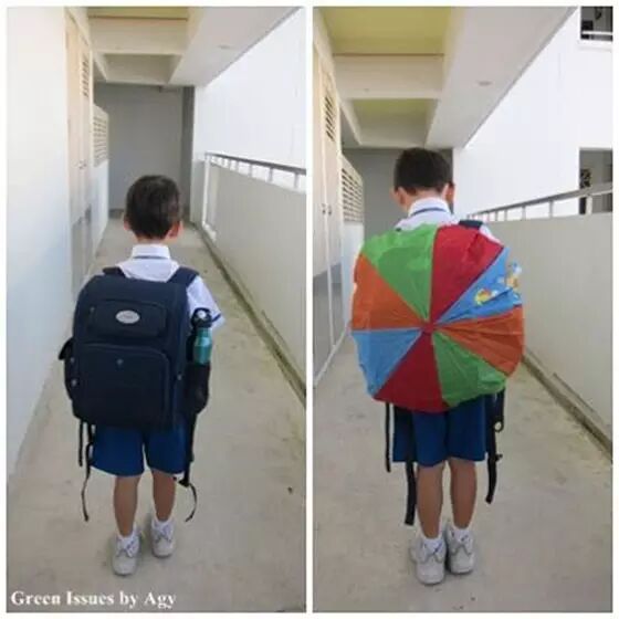 ▽ 做个防雨罩,放在孩子的书包兜里,这样他打伞时候再不担心书包会湿掉!