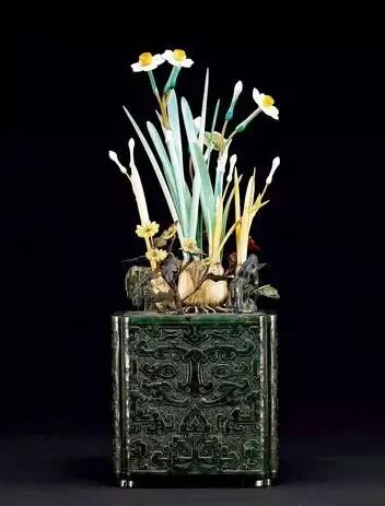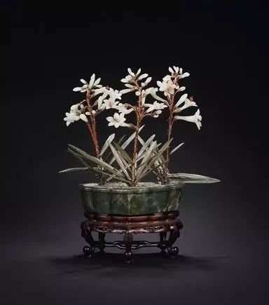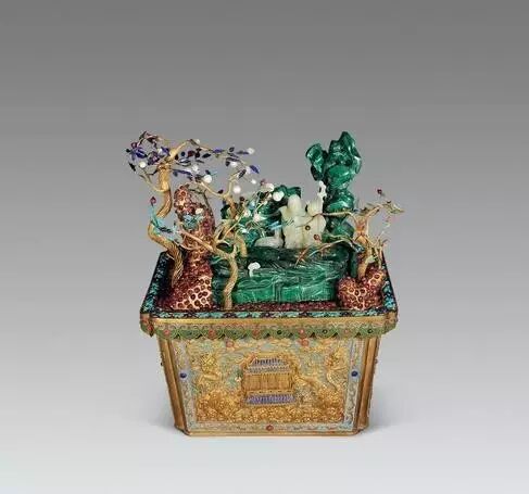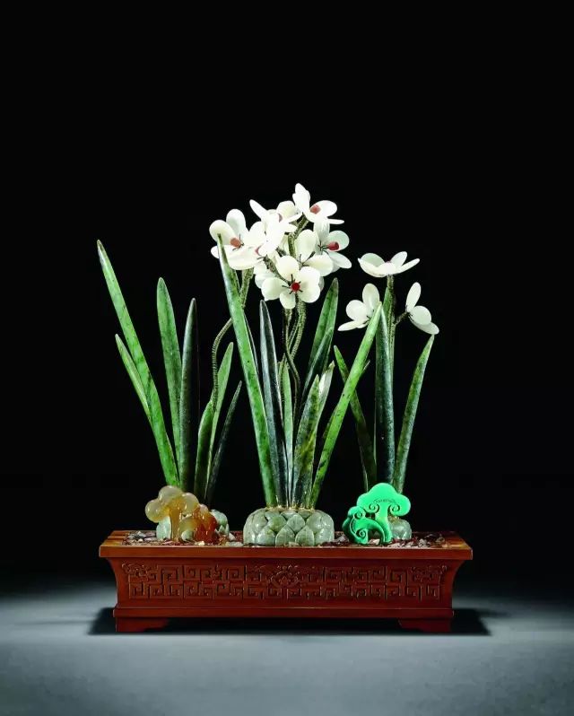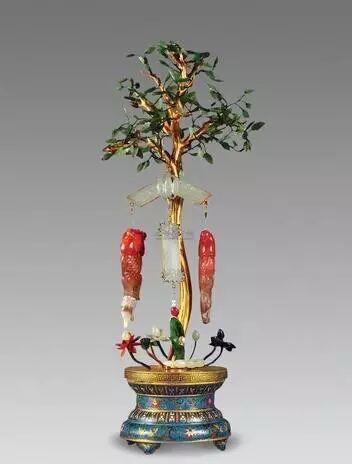 此类宫廷像生盆景虽也讲究布局构图的艺术性,但更注重材质的珍贵和景致题材的寓意。