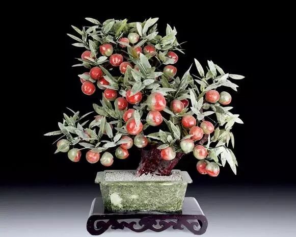 4、苏州盆景造型颇有特点,花枝曲折,有一枝九弯之说。雕琢花叶所用材料以白玉、碧玉等为多;
