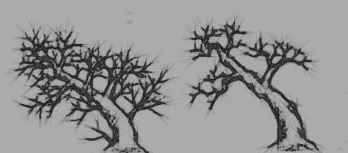 ⑶树木是立体的,从不同的角度去细心观察,就会有不同的画面空间,而每一个画面又必 然会形成截然不同的艺术效果.