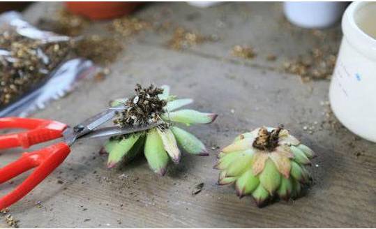 1、多肉到手后先剪根,晾放两天,让根的伤口愈合