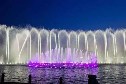 科技喷泉主要是通过结合灯光、音乐,自动化设置运用电子数控等技术,甚至是利用雾喷与投影,打造水幕电影的形式,实现更加绚烂的景观效果。