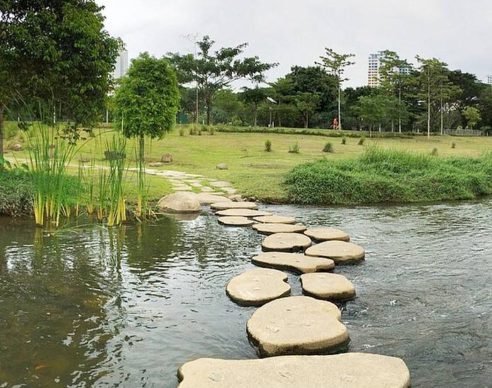 而汀步的设计,也可使水景更具自然乐趣,增添水面变化,方便游客在水上的游览,符合人与生俱来的亲水性。