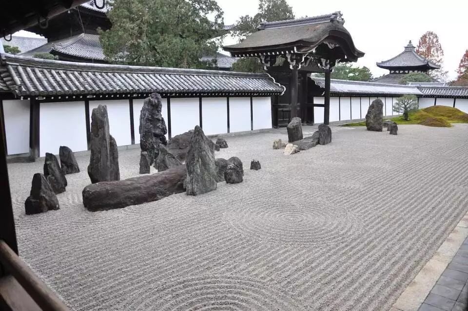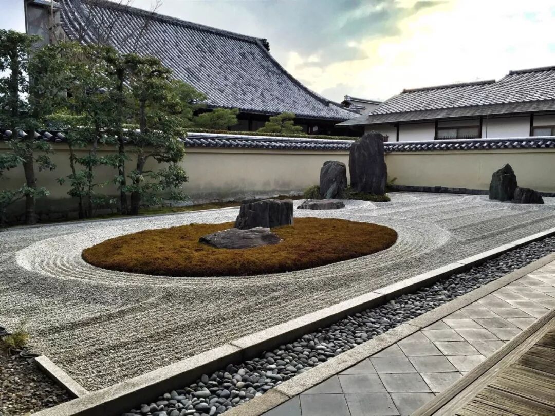 在此之前园林中必不可少的水池、瀑布之类的元素全部被砂石所代替,枯山水可以说是彻底颠覆了传统的造园方式。