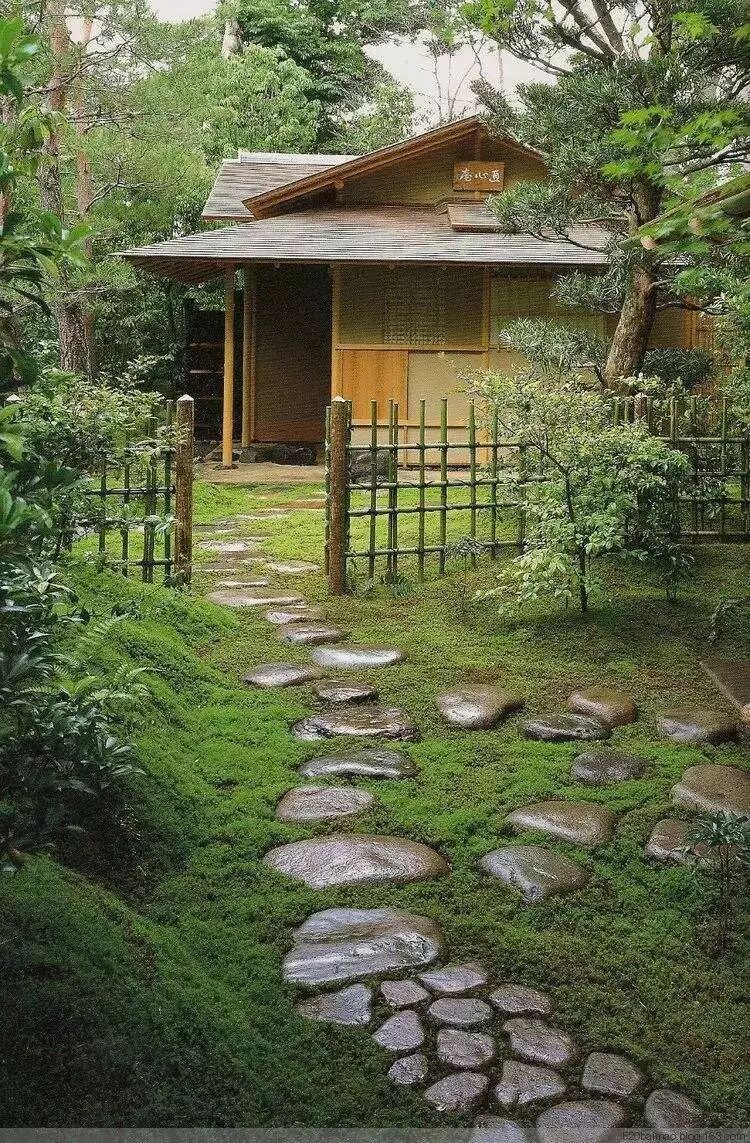 日本园林具有两种世界观,一是禅宗,二是茶道。前者创造了我们前文提到的枯山水,而后者就创造了茶庭。