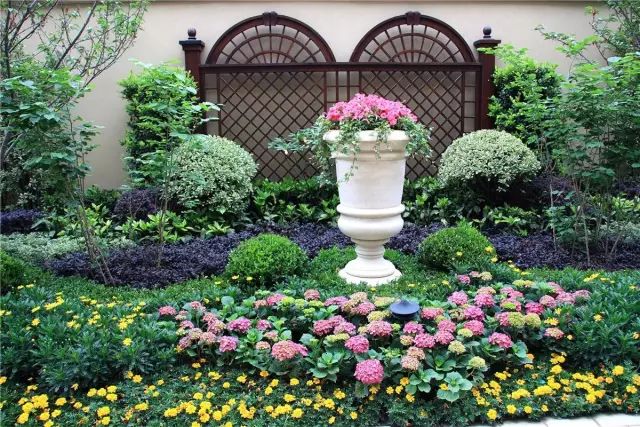 在植物景观配置中,对称与平衡原则是景观创作的精华。能带来整体稳定感,并确定景观脉络的秩序性,从整体上界定作品的结构要求。