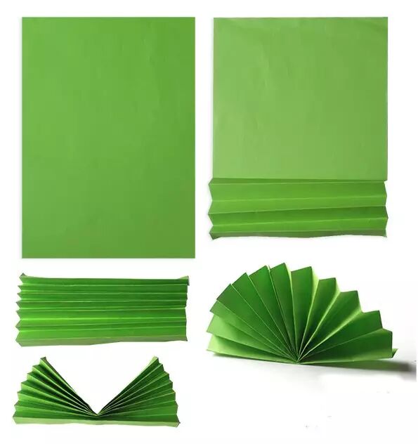 制作步骤:按照图示把绿色卡纸叠成扇子的形状
