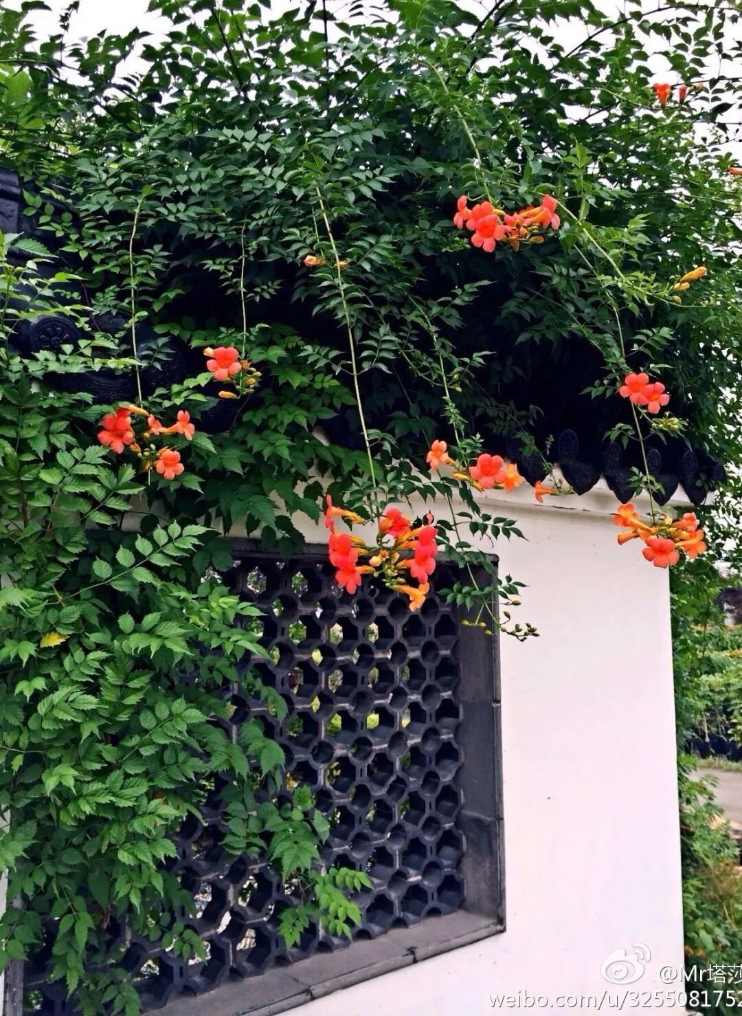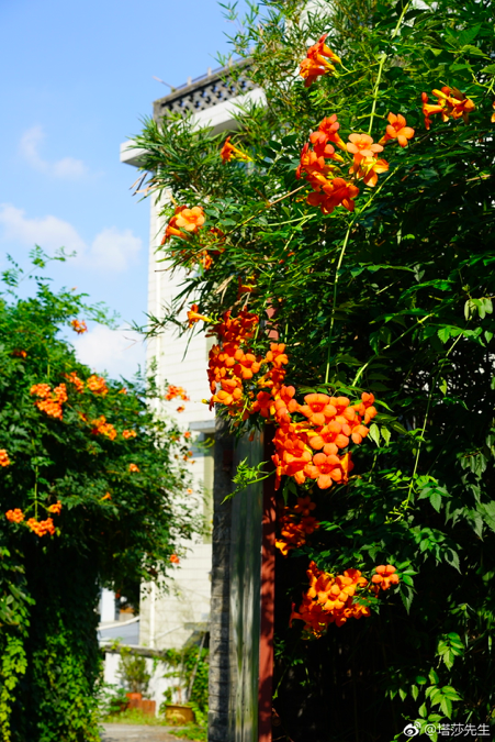 但同时凌霄的根系也十分强悍,需要注意墙体的稳固性。