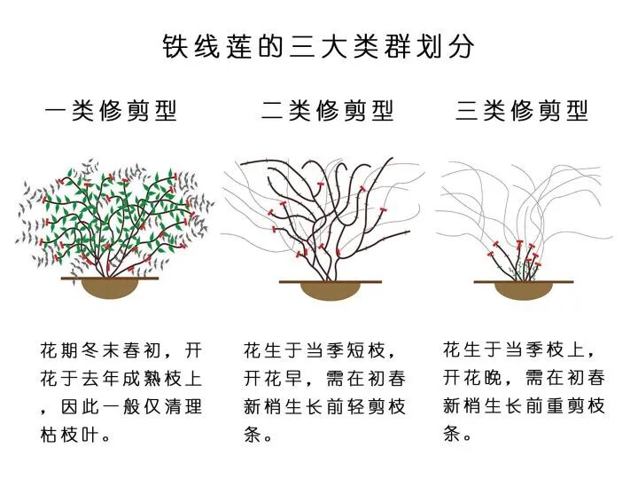 基于三大分类知识,加以合适的品种选择,错开了不同花期的铁线莲就可以实现全年赏花哟~