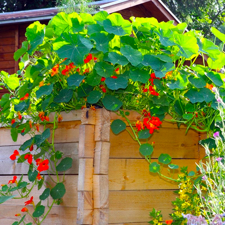 圆润的莲状叶子十分别具一格。盛开时的花朵好似蝴蝶飞舞其中,颜色艳丽,深得喜爱,在西餐中也作为一种调味品食用。