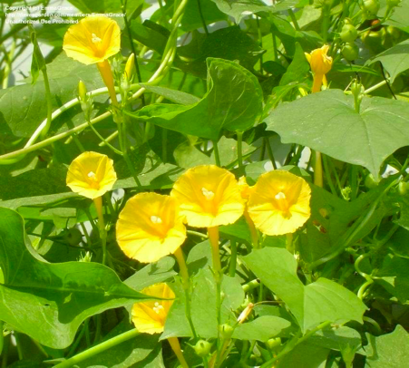 这是另外一种茑萝,嫩黄嫩黄的,迷人又稀有。花量繁多,藤蔓茂盛,是不可多得的品种。