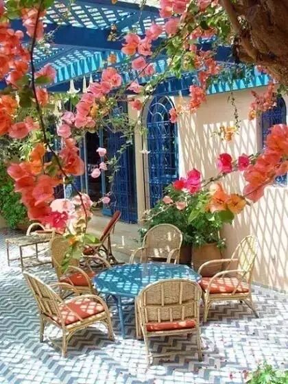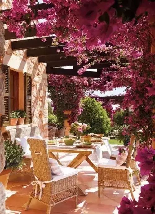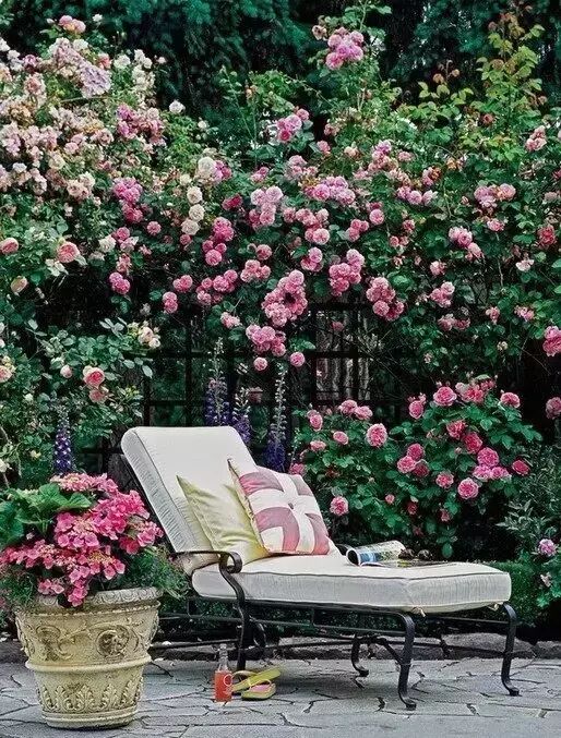 几本杂志,一个躺椅再配上杯果汁,看着满眼的姹紫千红多么惬意。