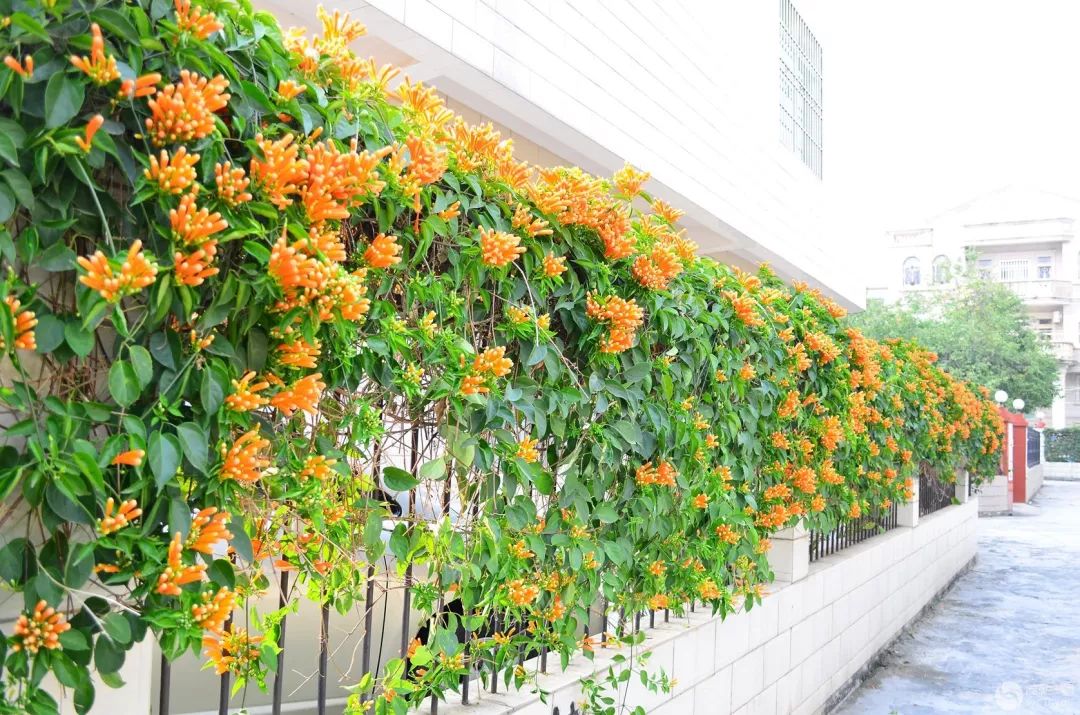 炮仗花是热带庭院广泛种植的藤架植物,