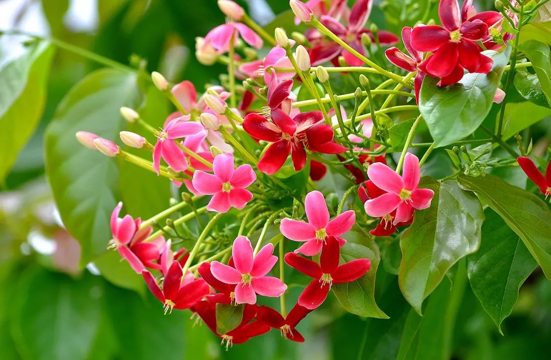 使君子因花色会随着开花时间而逐渐变淡,