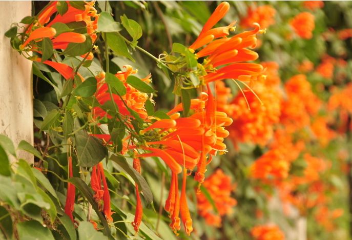 如同鞭炮般热烈,故有炮仗花之称。橙红色的鲜艳小花,